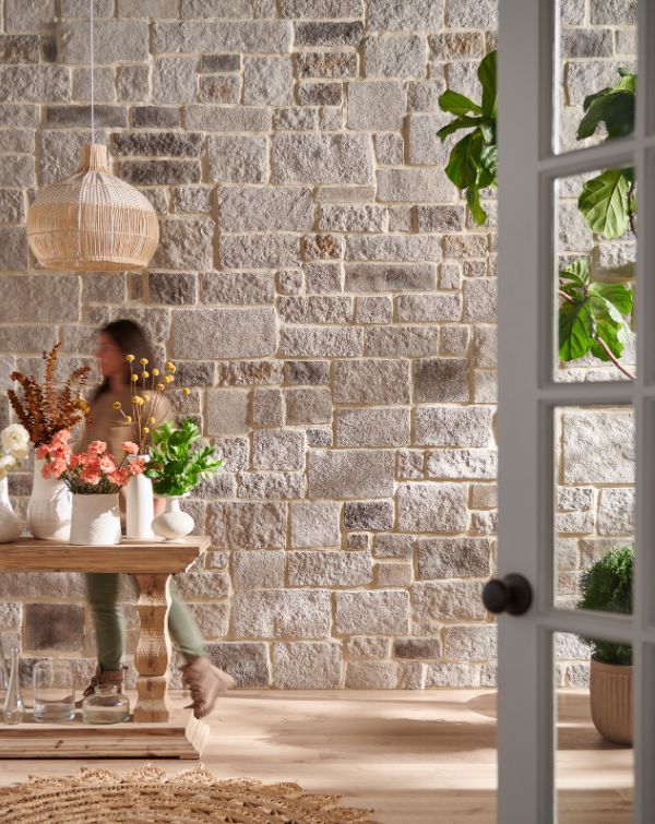 Homeowners and designers are gravitating toward stone and brick with character, finishes that feel a little rugged, a little imperfect, and full of story. Think weathered brick, hand-split ledgestone, or organic fieldstone with uneven edges. Instead of covering entire rooms, these materials are being used with intention – as statement fireplaces, feature walls, or architectural accents that instantly ground a space.